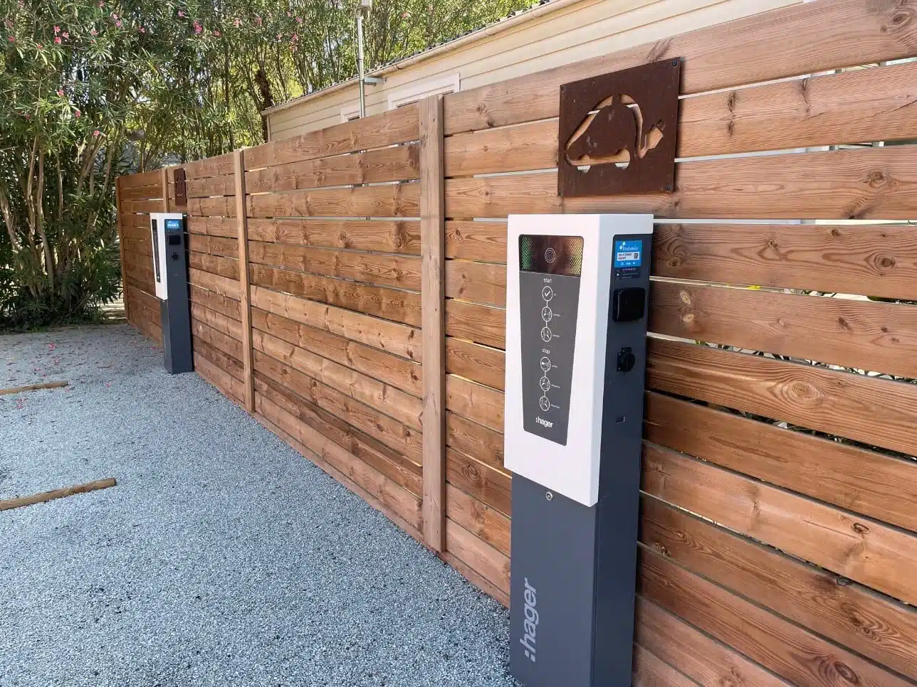 Les nostres 4 terminals IRVE estacions de càrrega, reservades exclusivament per als nostres clients, són un avantatge indispensable per als propietaris de vehicles elèctrics. Situades en llocs estratègics del càmping, les nostres estacions de càrrega garanteixen un accés ràpid i fàcil a l’energia que necessites. Cadascuna d’aquestes estacions ofereix 22 kW de potència, permetent-te carregar completament el teu vehicle en només unes hores. El procés es simplifica gràcies a la nostra col·laboració amb Freshmile: només cal descarregar l’aplicació o escanejar el codi QR de l’estació de càrrega per iniciar la càrrega. El pàrquing també està pensat per al teu confort, amb 4 places reservades per als vehicles elèctrics en càrrega. Així podràs gaudir de les teves vacances sabent que el teu cotxe està ben cuidat.